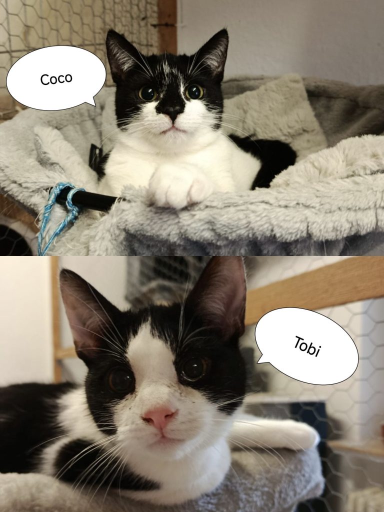 Das verspielte Duo Coco (schwarze Nase) und Tobi (helle Nase) (geboren im Juni 2025) ist bereit, die Herzen ihrer neuen Menschen zu erobern! Die beiden sind ein eingespieltes Team, das gemeinsam durch dick und dünn geht und nun einen Platz sucht, an dem sie Geborgenheit finden.
