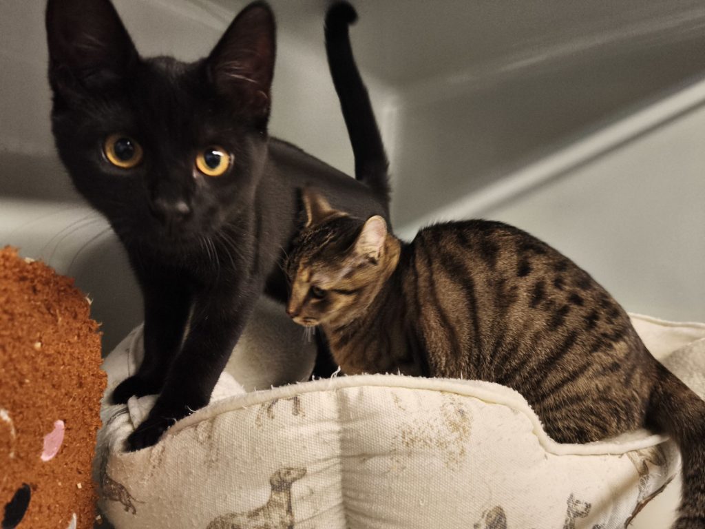 Manchmal schreibt das Leben die schönsten Geschichten – so auch bei unseren zwei Mädels Hailey (schwarz) und Bailey (getigert). Obwohl sie keine leiblichen Schwestern sind, sind sie heute ein unzertrennliches Team, das wir nur gemeinsam in ihr neues Zuhause ziehen lassen.